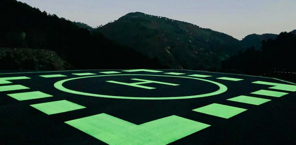 21 Fév Par:Miditraçage Esvia Categories: no comments Photoluminescent | HELIPORT Réalisation d’un héliport en peinture photoluminescente VENUS® by Miditraçage par les équipes de l’agence des Alpes Maritimes. Des propriétés naturelles qui éclairent et guident le usagers. Écologique et autonome, la peinture photoluminescente se recharge à la lumière du jour et s’illumine à la tombée de la nuit sans aucun apport d’énergie électrique Lire plus