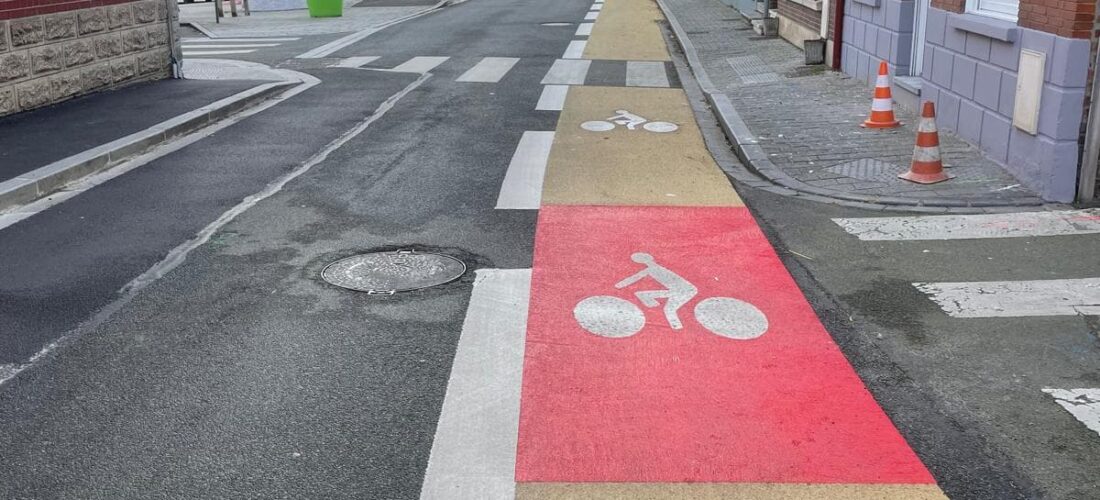 13 Déc Par:Miditraçage Esvia Categories: no comments Marquages au sol et Panneaux pour Aménagements Cyclables | STEENVOORDE Nos équipes Hauts-de-France ont réalisé des aménagements pour Cœur de Flandre Agglomération, incluant la pose de panneaux et des marquages en enduit à froid projeté. Une solution durable et anti-glissante pour des déplacements cyclables plus sûrs.#MobilitéDouce #SécuritéRoutière #Cyclisme Lire plus