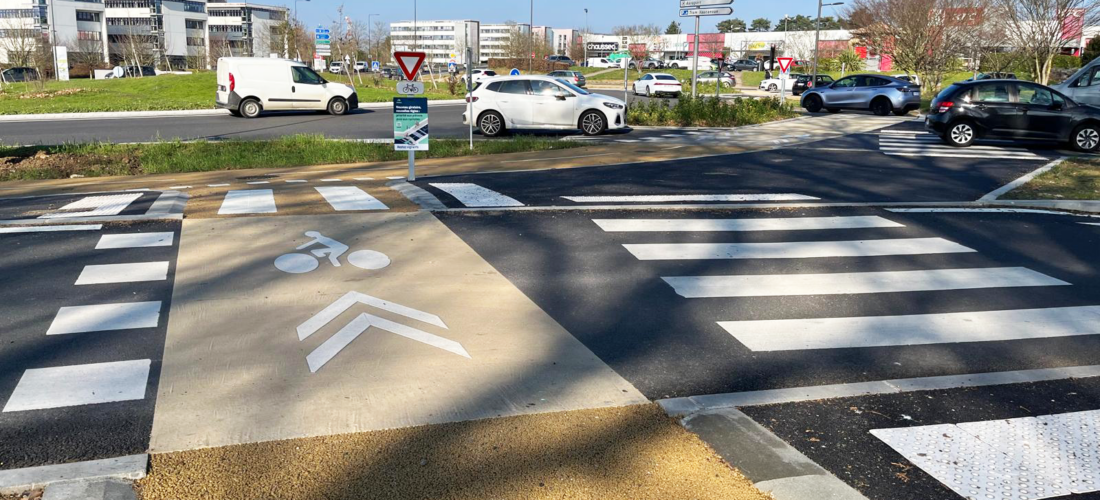 17 Fév Par:Miditraçage Esvia Categories: no comments Mobilités Douces Carrefours à la Hollandaise | TOURS À Tours, nos équipes ont réalisé la signalisation horizontale et verticale des nouveaux giratoires à la hollandaise, favorisant la sécurité des cyclistes et piétons. Ces aménagements innovants, conçus pour une mobilité plus fluide et durable, intègrent des pistes cyclables séparées et des passages surélevés pour une meilleure co-visibilité et priorité des usagers doux. Lire plus